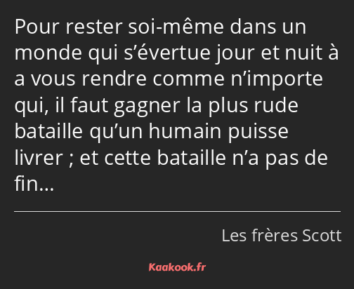 Rester soi même. Rester soi-même dans un monde qui tente constamment de te changer est le plus grand accomplissement. Lhomme ne peut rester lui-même quen travaillant sans cesse à sélever au-dessus de lui-même.